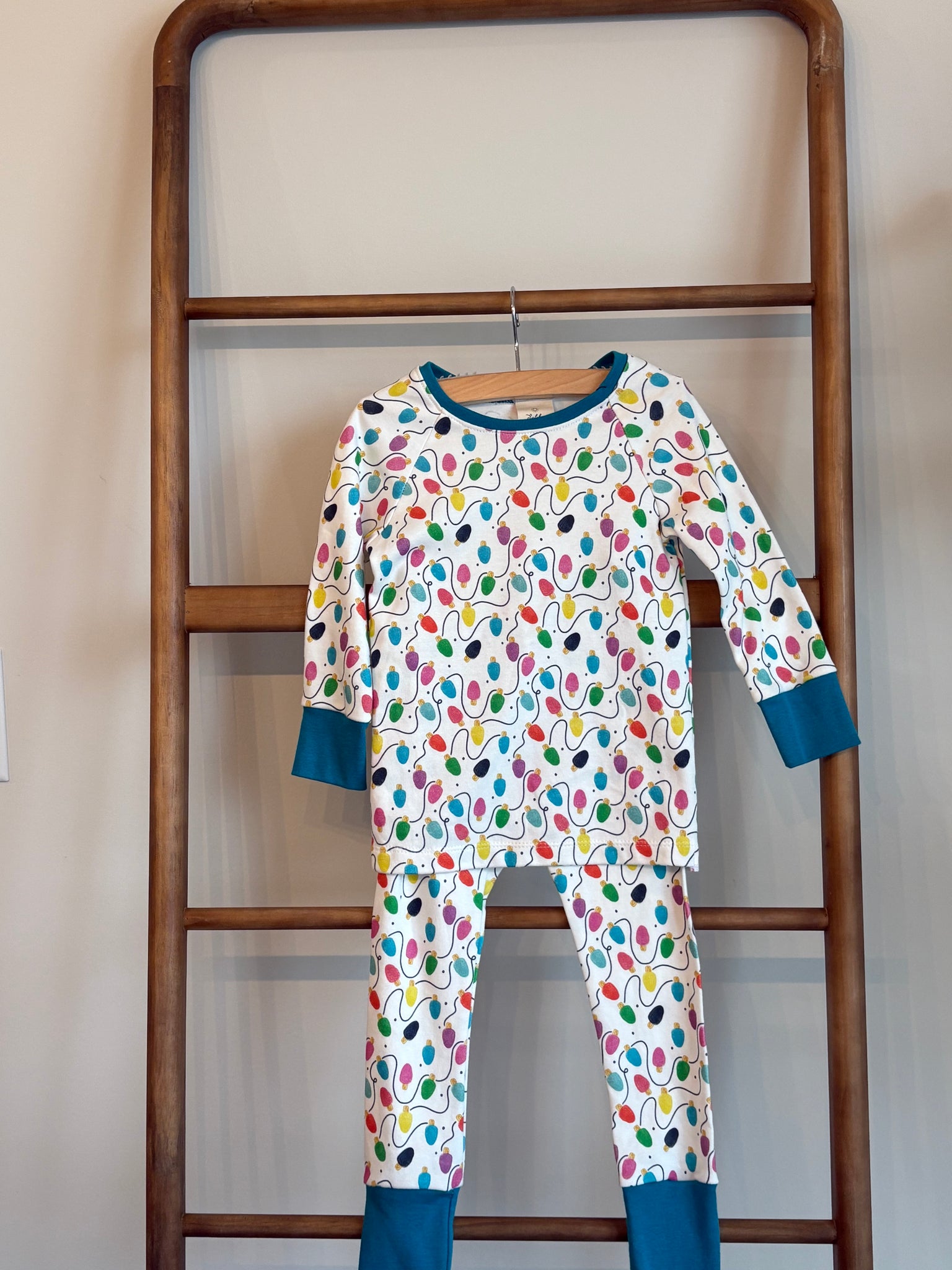 Handmade children's lounge (pajama) set includes long sleeve cotton knit raglan shirt and matching cotton knit gusset pants perfect for cozy days and nights. Each piece is made in Naples, Florida with lots of love