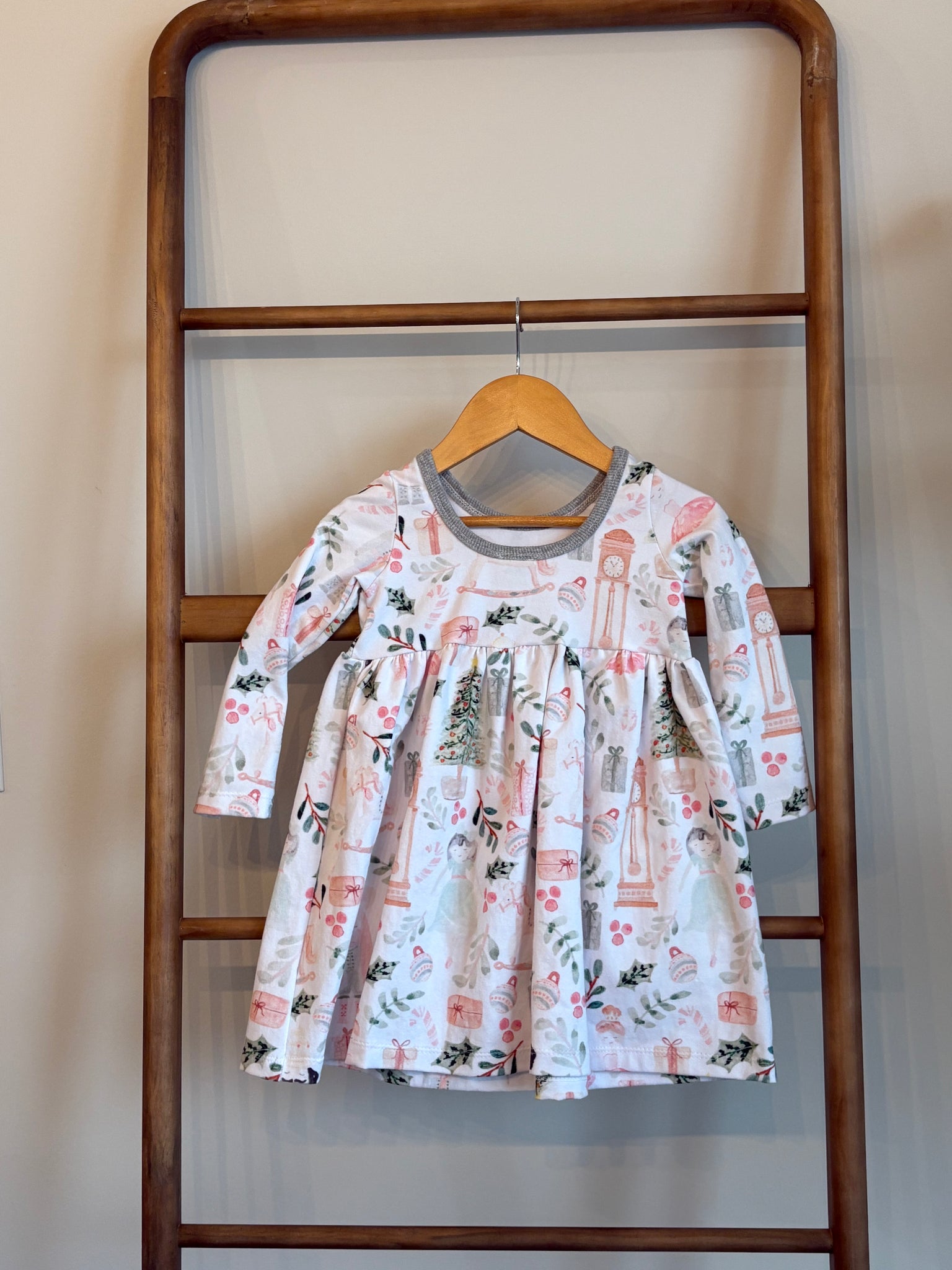 The ultimate “she’ll never take it off” holiday dress has arrived. Soft pastel Nutcrackers dance across ballet-pink organic cotton in the sweetest print you’ve ever seen — paired with the most magical twirl on planet Earth.