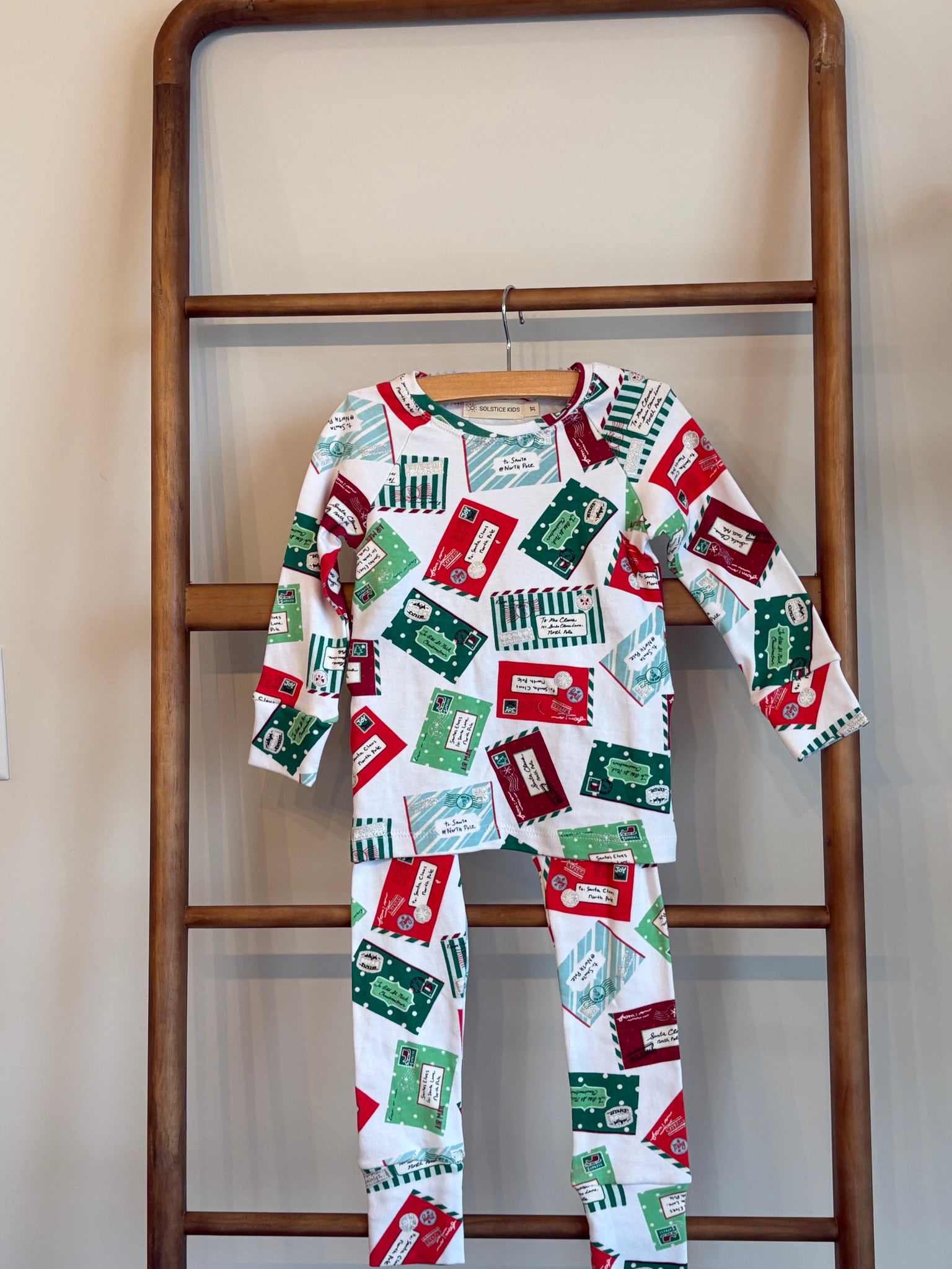Handmade children's lounge set includes long sleeve cotton knit raglan shirt and matching cotton knit gusset pants perfect for cozy days and nights. Includes cuffs on arms and legs. Each piece is made in Naples, Florida with lots of love.