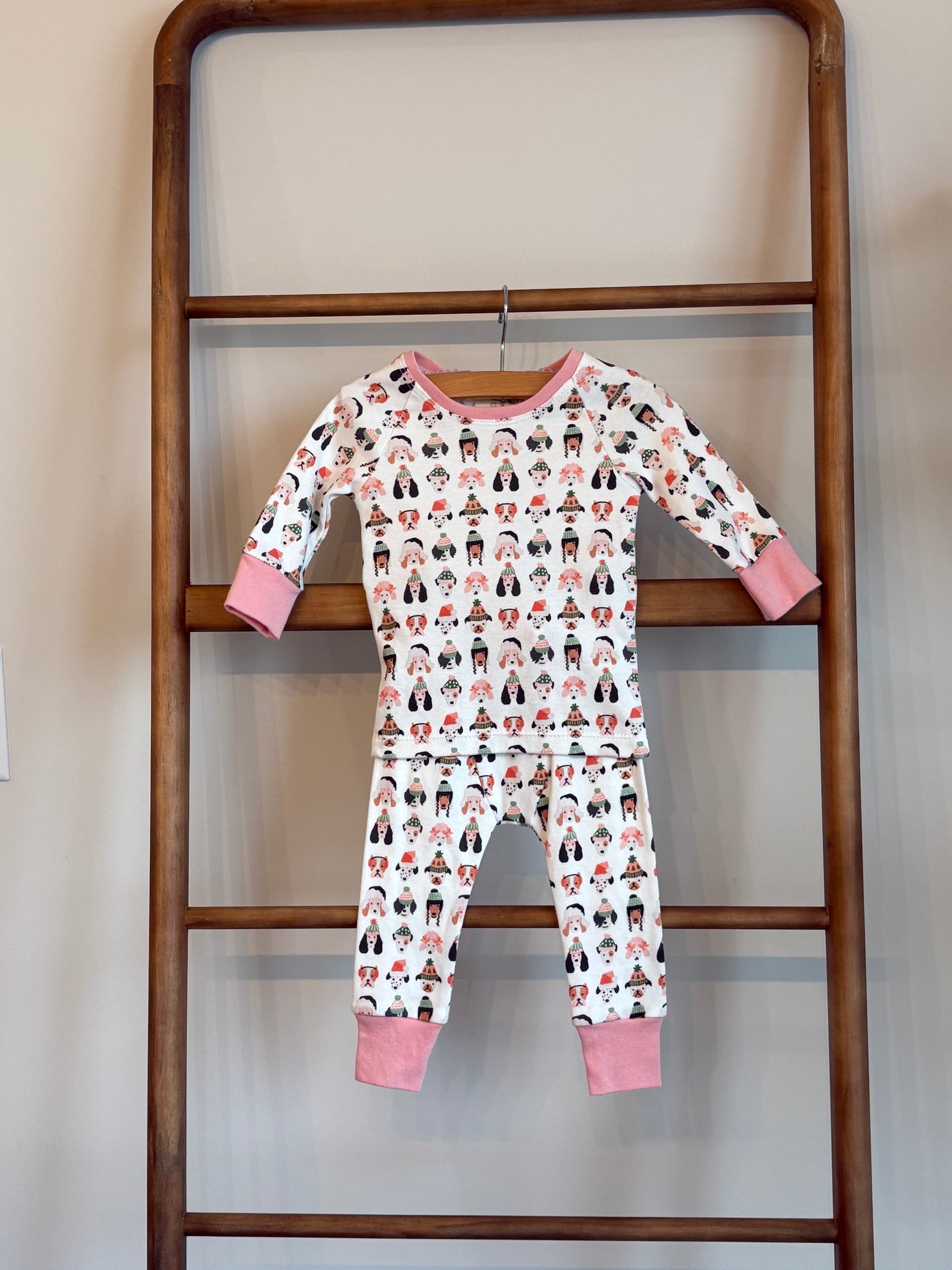 Handmade children's lounge (pajama) set includes long sleeve cotton knit raglan shirt and matching cotton knit gusset pants perfect for cozy days and nights. Each piece is made in Naples, Florida with lots of love.